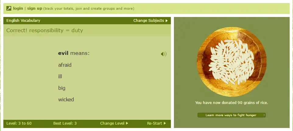 This is a website where you give answers to questions and each correct answer is converted to 10 grains of rice which is donated to charity 윈도우 xp 무비 메이커. This website is under authority of the world food program. So give answers to the simple question and remove hunger from the world!