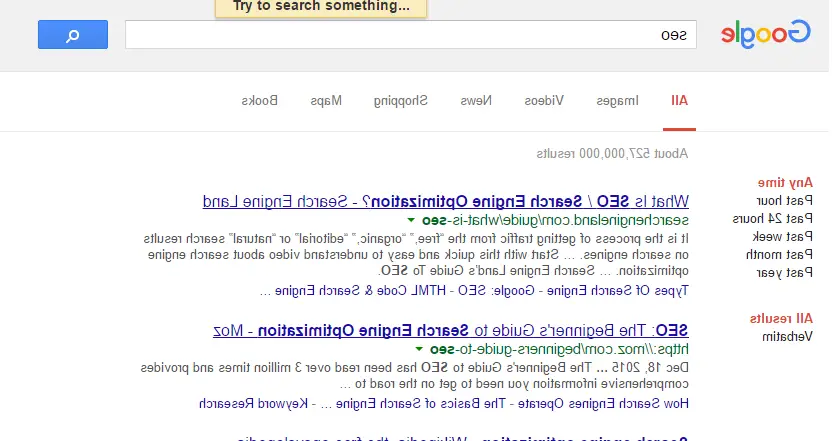 This trick will show your Google homepage as well as your searches as seeing in a mirror. Everything seems upside down.