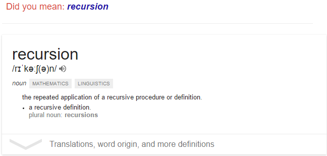 Google is funny at this time 7080 song collection. When your type recursion in search it says: Do you mean Recursion? Whether there is no mistake in it. 😀