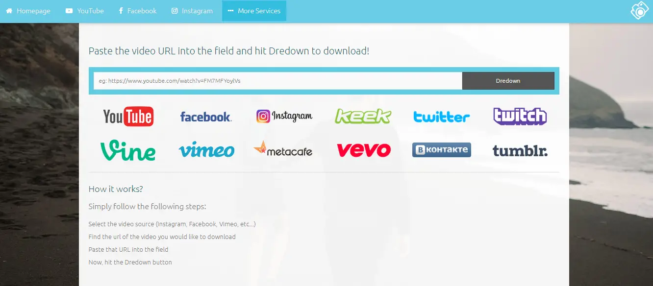 It is probably one of the best online tools that offer a simple method to download the even lengthy videos. The main thing about it is that is you can save private videos and share with your friend. Just go to the site and navigate to the Tumblr site, choose the videos and copy URL and paste it on the DreDown page and click on the download DreDown button.