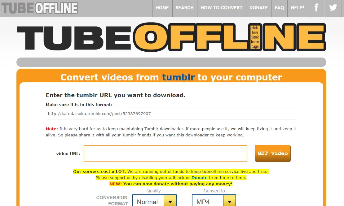 This is another online website that can provide you an easy way to download many videos possible from Tumblr. There are two ways you can use it, you need to copy the URL of the specific video and open ninja tube site, paste the URL and click on the download button.