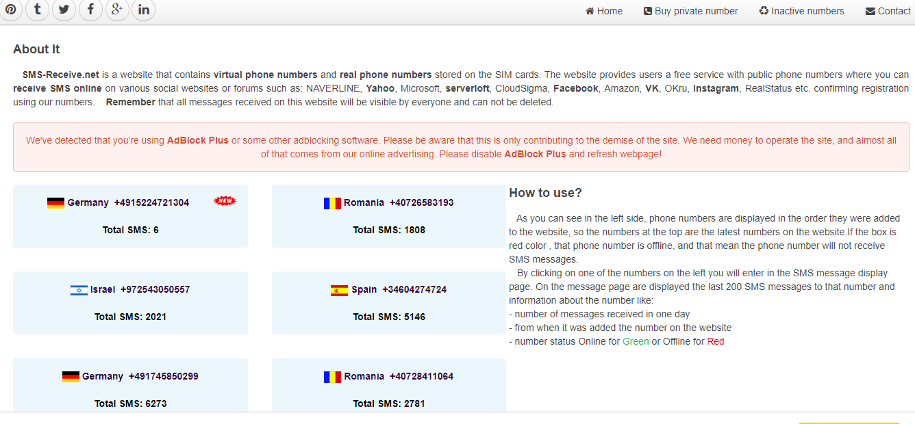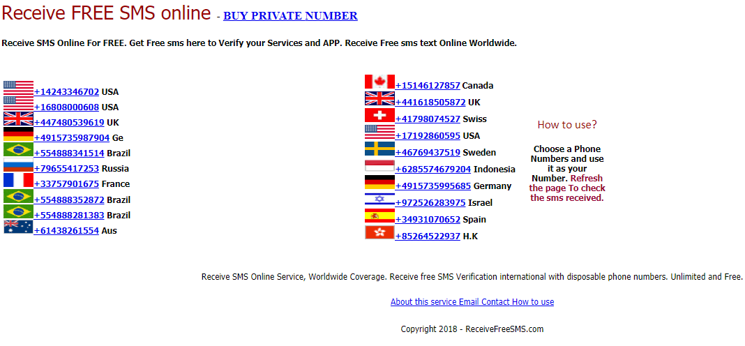 This website offers great collections of numbers which can get you connected to various networks and free to use. All you need is to choose the number and interring you will get a ‘’free virtual phone number to receive text’’ makes you less worry about jeopardizing the real one.
