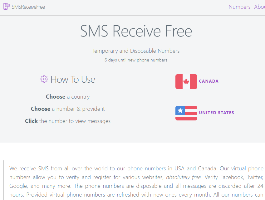 It is a virtual site and you get to select two types of categories from private and free disposable numbers. This website has one thing in common all the messages are deleted within 24 hours and refreshed each month with new numbers to carry on.