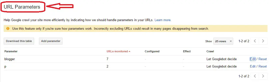 to prevent crawling duplicate content. I would prefer not to use this Tool unless you have complete knowledge about it because it can cause disappearing your site pages in Google if used incorrectly.