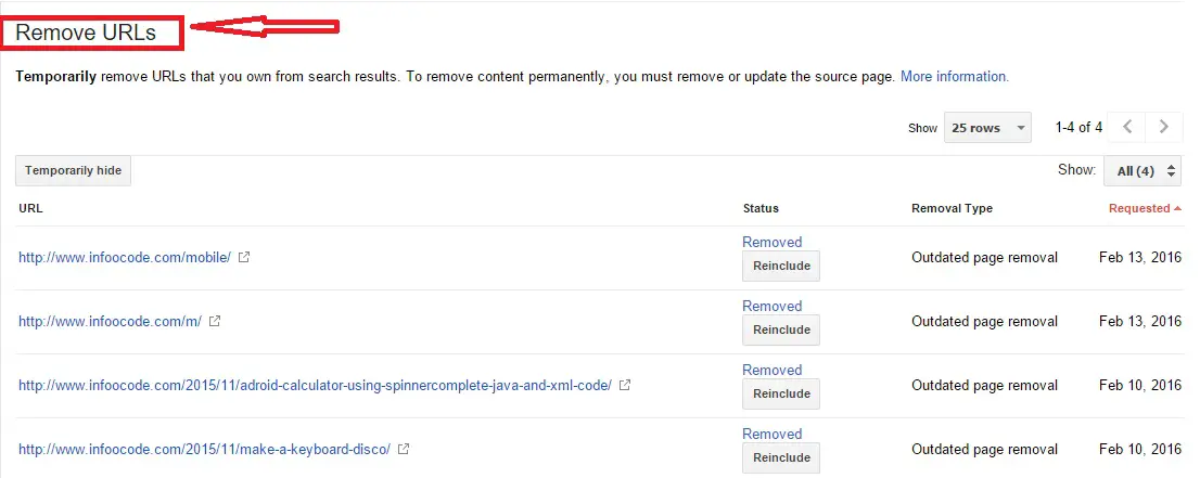 In this part you can remove those url’s from your website which are dead (No more on site). This is extremely important work to do. When you have a link in your site which is dead so it give a 404 page not found! Error to the visitor and Google note that error. It harms search engine qualities and can give trouble (demote site ranking).