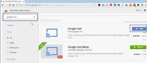 Go to Google Addon Site and search for Google Cast.