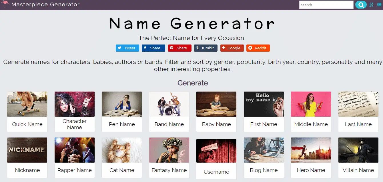 This is one of those Instagram generators that offers truly unique names and used in a sense of a quiz to determine your personality and suggests better matching names. It works on a quiz test and also provides the image as well.