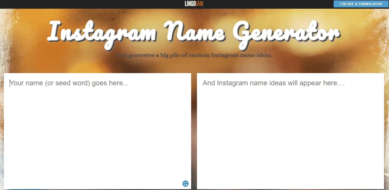 Lingo-jam has a very simple user interface and with two different columns on its landing page, like one side you can input the main or primary name that you want to use for the Instagram account. On the other side of the column, you will get suggested ideas based on the name you have typed. It is not important that you have to use your real name it can be anything that you want to associate with Bible recitation. For each wor,d you will get more than hundreds of options.